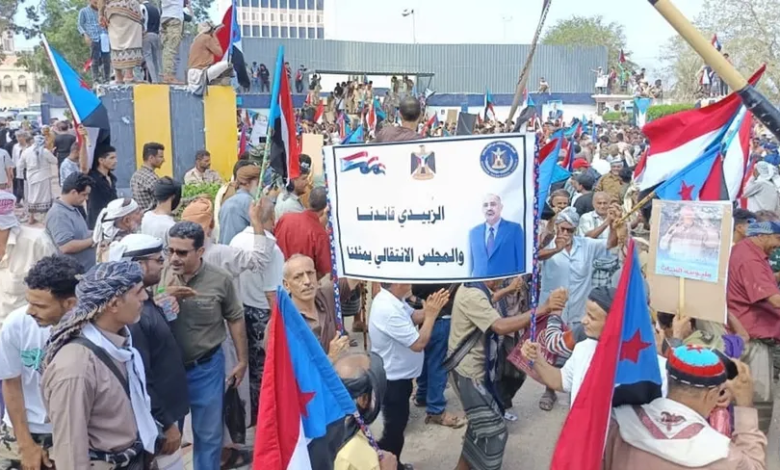 كما رددوا هتافات أخرى مؤيدة لرئيس المجلس الانتقالي المنحل، عيدروس الزبيدي : ياعيدروس سير سير..نحن جيشك للتحرير.