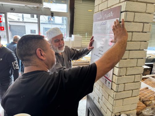 زارت مبادرة “العربية لغتنا”، اليوم السبت، مخابز مدينة كفر قرع، في إطار جهودها لتعزيز حضور اللغة العربية في الحياة اليومية، حيث جرى توزيع لافتات تحمل المسميات العربية لمنتوجات المخابز، وتعليقها على مداخلها.