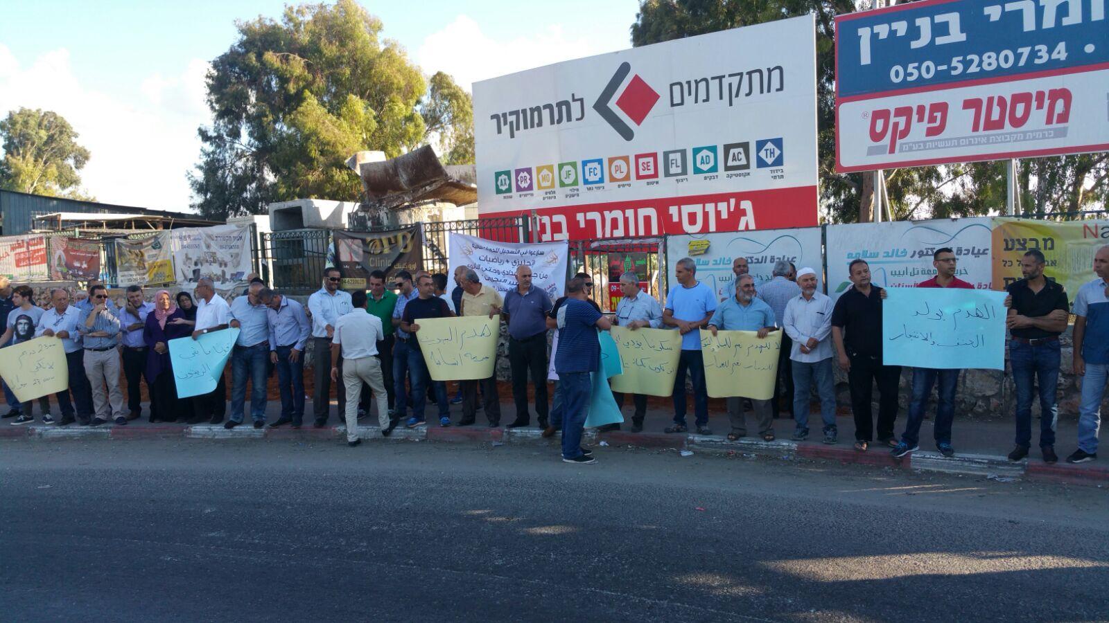 ورفع المتظاهرون شعارات رافضة لسياسة الهدم التي تشنها السلطات الإسرائيلية في الآونة الأخيرة، مشيرين إلى أهمية تكاتف الجهود من اجل التصدي لهذه السياسة.