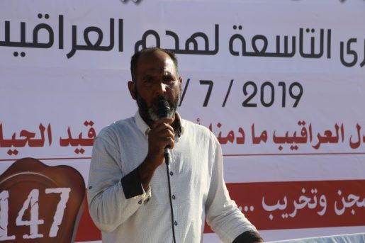 من جانبه قال رئيس لجنة الحريات في مستهل كلمته: “تعلمنا من الرسل الكرام أن أفضل الجهاد، كلمة حق عند سلطان جائر، ولا أظن أبدا بل أجزم أنه لا سلطان أظلم من سلطان الحكومة الإسرائيلية، لا سلطان أظلم ولا أبطش ولا اقبح من سلطان حكومة تخصص وحدات من شرطتها وميزانياتها من اجل ان تأتي لتقتلع خياما وبيوتا هكذا كالتي ترونها في العراقي 147، مرة لا ادري لو حسبت بالقلم والورقة تكاليف جرافات وشاحنات ورجال شرطة وسيارات وموظفين ومخبرين، طوال هذه المدة وهذه المرات، كم قرية كانت ستبنى وكم عائلة كان سيتم ايواؤها، ولكن لأن من الناس من لا يعشقون إلا الهدم وإلا التخريب وإلا الاقتلاع، هؤلاء هم جنود الظلام، ليس “جنود الظلام” الذين يحبون فعل الخير في الظلام، أبدا وإنما هم الخفافيش التي لا تظهر إلا بالظلام”.