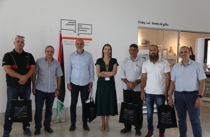 واجتمع الوفد مع إدارة المتحف الفلسطيني، وتعقيبا على ذلك قالت مديرة المتحف د. عادلة العايدي: تشرفنا اليوم باستقبال هذا الوفد الكريم من أهلنا في الداخل لنعرض عليهم، كمتحف فلسطيني، خبرتنا ولكي نبحث سبل التعاون وفتح قنوات تواصل مع فلسطينيي الداخل لتنفيذ مشاريع فنية مستقبلية.