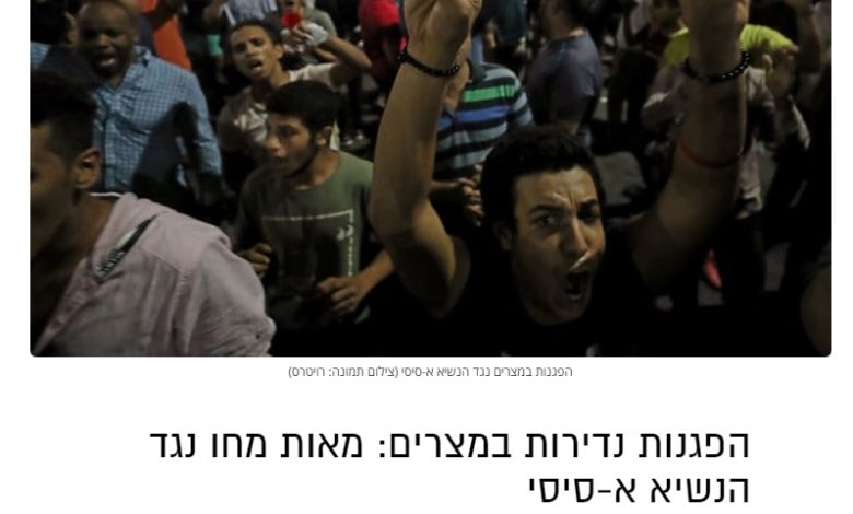 اهتمت الصحافة الإسرائيلية في تغطيتها الإخبارية السبت، بالمظاهرات التي خرجت مساء الجمعة في مدن مصرية عدة، واصفة إياها بأنها “نادرة”، منذ تولي عبد الفتاح السيسي للسلطة بعد الانقلاب العسكري في مصر عام 2013.