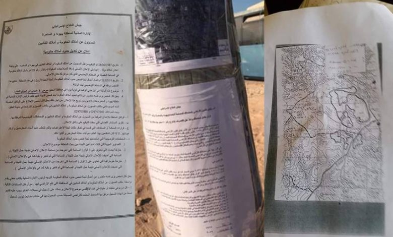 وقالت مصادر حقوقية إنّ الاحتلال فعّل قرارًا اتخذه عام 1987 استولي بموجبه على 1500 دونم من أراضي دورا جنوبي الخليل، بحجة أنها “أملاك دولة”.