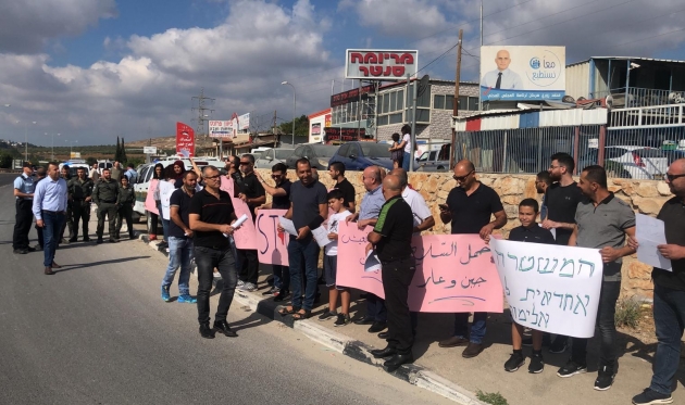 تظاهر العشرات من أهالي نحف، اليوم الخميس، في مدخل القرية ضد العنف وجرائم القتل وتواطؤ الشرطة.