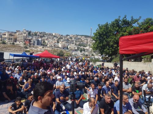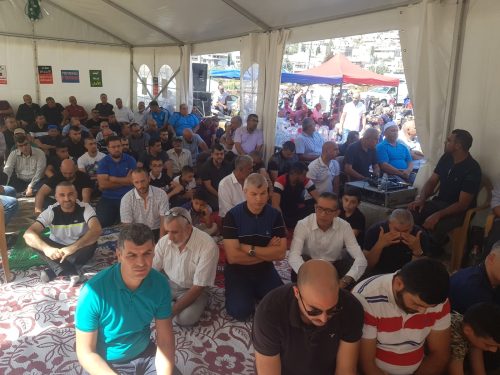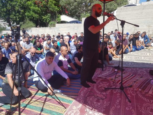 وسبق هذه التظاهرة، صلاة جمعة حاشدة في خيمة الاعتصام التي أقامتها اللجنة الشعبية أمام مركز الشرطة في مدينة أم الفحم وكان خطيبها الدكتور رائد فتحي، حيث تحدث عن جرائم القل والعنف وحذر الشباب من السقوط في هذا المستنقع.