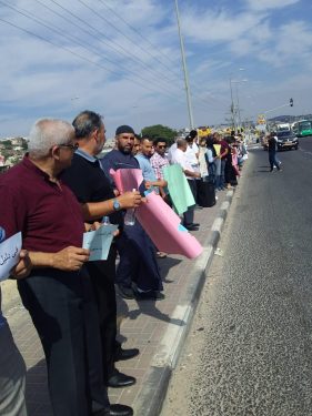 في حين تظاهر عددا من أهالي الناصرة قرب مفرق “البيغ”، الساعة الثالثة بعد ظهر اليوم، ورفعوا شعارات وهتفوا ضد العنف والقتل، داعين الشرطة للقيام بعملها وعدم التواطؤ مع عصابات الإجرام. ووجه المتظاهرون صرخة “يا إردان شعبنا بده الأمان”، “يا مجرم اطلع برا بلادي العربية حرة”، “إحنا شعب بده يعيش ما بده رصاص وحشيش”.
