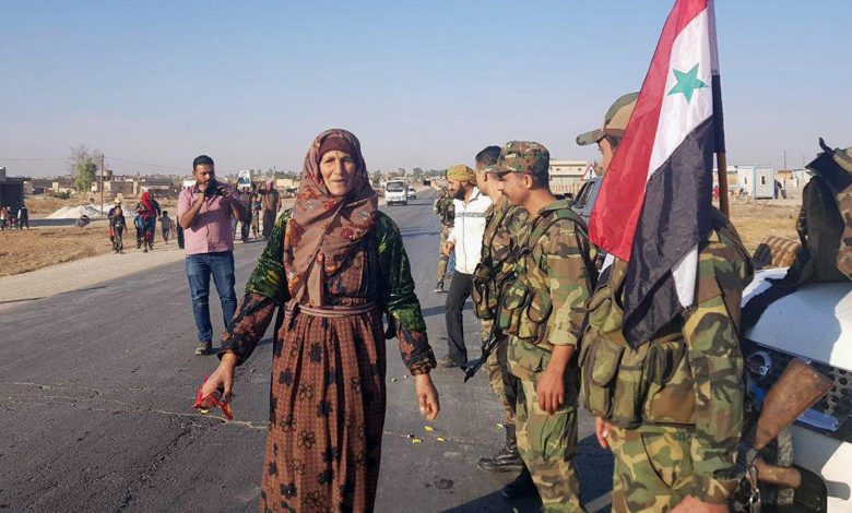 وأفادت وكالة سانا التابعة للنظام السوري بأن وحدات من قوات النظام دخلت بلدة تل تمر الواقعة على بعد نحو ثلاثين كيلومترا من رأس العين في ريف الحسكة الشمالي لمواجهة ما وصفته بـ”العدوان التركي”، واقتربت نحو ستة كيلومترات من الحدود التركية، كما انتشرت وحدات من قوات النظام مزودة بدبابات وآليات ثقيلة في محيط مدينة منبج.