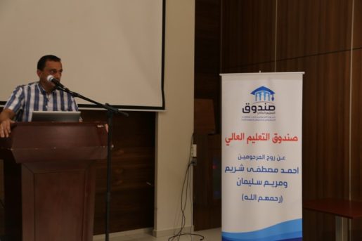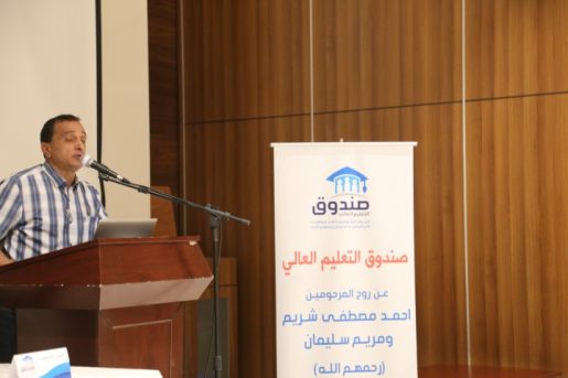 وفي ختام المؤتمر تحدث الدكتور سامي جمال، عضو مجلس أمناء الصندوق، وقال إن هذا العمل والعطاء الذي يقوم به الحاج مصطفى احمد شريم منذ 15 عاما هو عمل جبّار، حيث أن هذا العمل غير مفهوم ضمنا في مجتمعنا، مضيفا “كنت قد تعرفت على بعض الطلاب في السنوات الماضية تلقوا منحا تعليمية من صندوق التعليم العالي وأنا أجزم أنه لولا هذه المنحة الجزئية أو الكاملة التي حصل عليه الطالب ما كان له أن يستمر في تعليمه فهذا هو الاستثمار الحقيقي الذي يفيد مجتمعنا”.