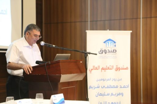 وقال: “نلتقي اليوم بصدد نقل الصندوق من صندوق للتعليم العالي على اسم والديّ رحمها الله، أحمد مصطفى شريم ومريم سليمان من نطاق محلي إلى نطاق قطري يخدم كافة أبناء مجتمعنا في الداخل الفلسطيني”.