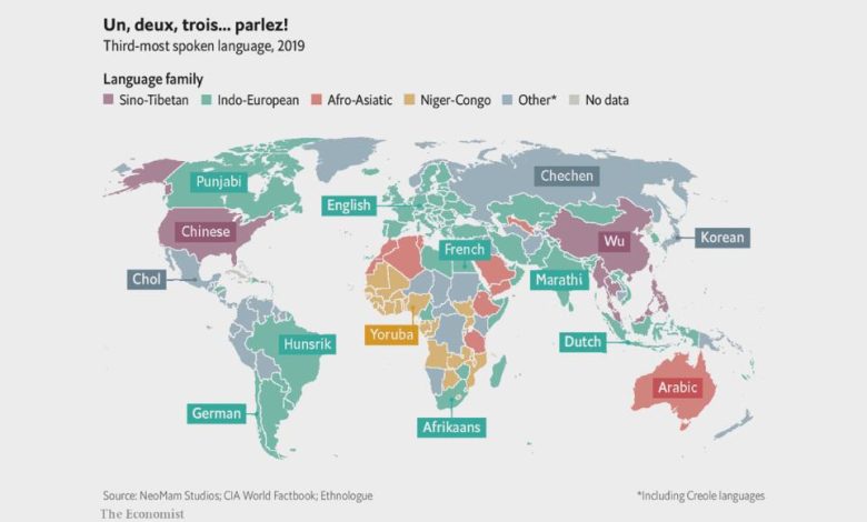 لذلك لم تكتف شركة “نيومام ستوديوس” (شركة تصميم بريطانية) بتحديد اللغات الأولى والثانية الأكثر تحدثا في كل دولة تقريبا، بل اللغة الثالثة أيضا.