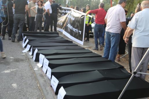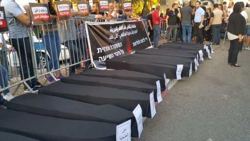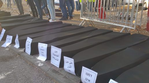 وسبق المظاهرة، مسيرة التوابيت السوداء، وكتب عليها “على مين الدور”، بحيث التحمت بالمظاهرة القطرية أمام مقر قيادة الشرطة، قادمة من المنطقة الصناعية في مدينة الناصرة.