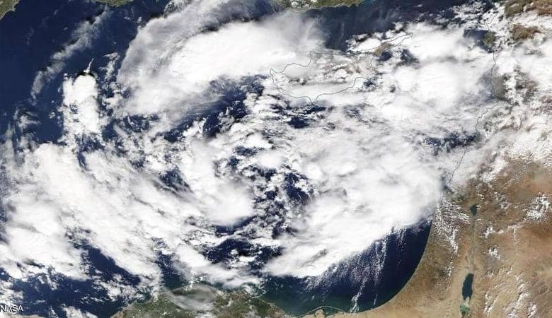 وذكرت صحيفة “واشنطن بوست” الأميركية أن صورة “ناسا” تشير إلى توقع إعصار مداري “غير عاد” في بعض مناطق مصر وإسرائيل، مما ينذر بعواصف وأمطار غزيرة، وربما حتى “فيضانات ساحلية”.